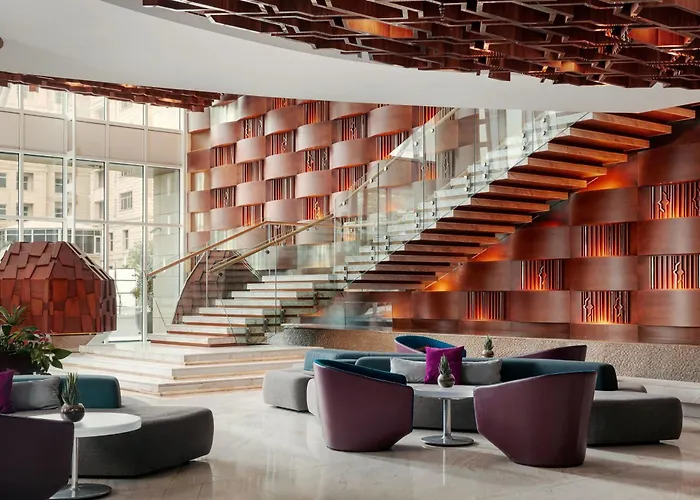 The 5-star Baku Marriott Hotel Boulevard offers guests access to the Upmarket Port Baku Shopping Mall, which is 3.3 km away. This luxury hotel, located 10 minutes by car from Heydar Aliyev Center, boasts an indoor pool along with a Turkish steam bath, a treatment room, and an indoor pool.