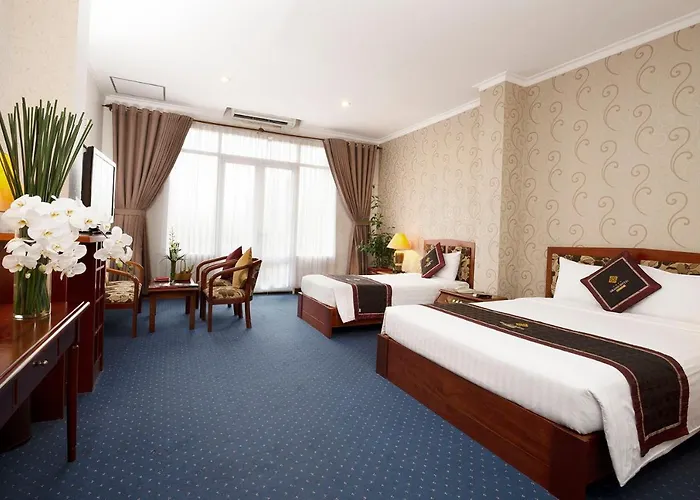 Featuring a hot tub and a sauna, Royal Lotus Hotel Ha Long is located in the heart of Ha Long, 5 minutes' walk from Bo Hon. Offering views of the sea, the venue is placed close to Cai Dam Market and boasts an outdoor pool area.